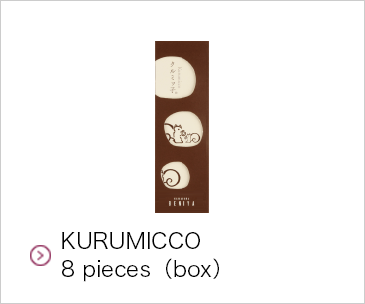 Our homemade caramel is stuffed full of walnuts, then wrapped in buttery dough. These three ingredients come together in delicious elegance to create the wildly popular Kamakura Beniya staple called KURUMICCO. Made to have a definite sweetness without being too rich. Along with the superb balance of caramel and walnuts, firm dough adds the finishing touch. Try it chilled in the summertime to experience the taste of the season.