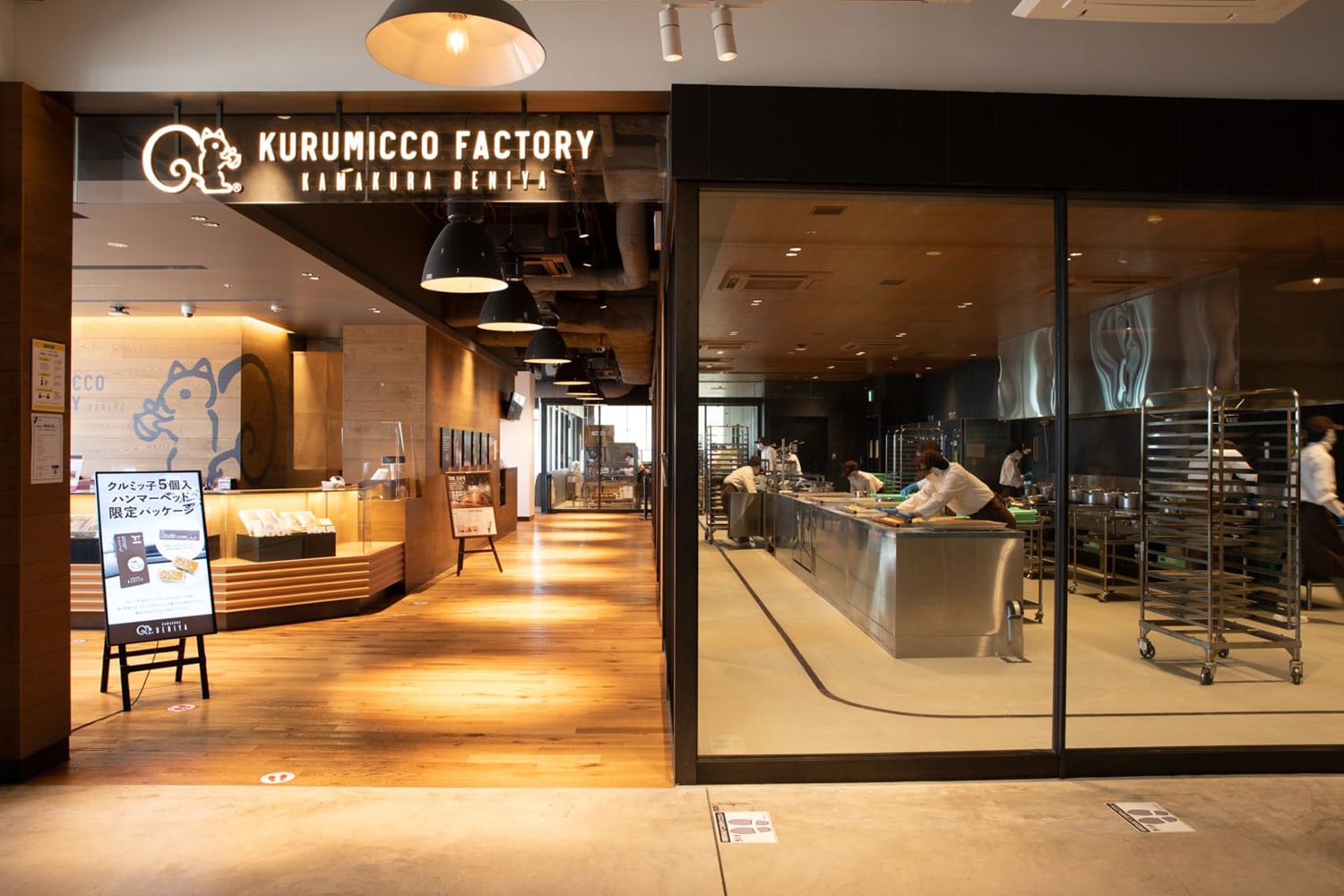 その後も変わらずクルミッ子生産数が追い付かない状況は続いており、生産拠点増設についての議論も社内で交わされていたちょうどそんなときに、横浜ハンマーヘッド建築のご案内と共に出店のご依頼を頂き、クルミッ子ファクトリーという念願だった見学のできる工場をコンセプトに新たな生産拠点としてのプロジェクトがスタートし、2019年秋にクルミッ子ファクトリーがオープンしました。