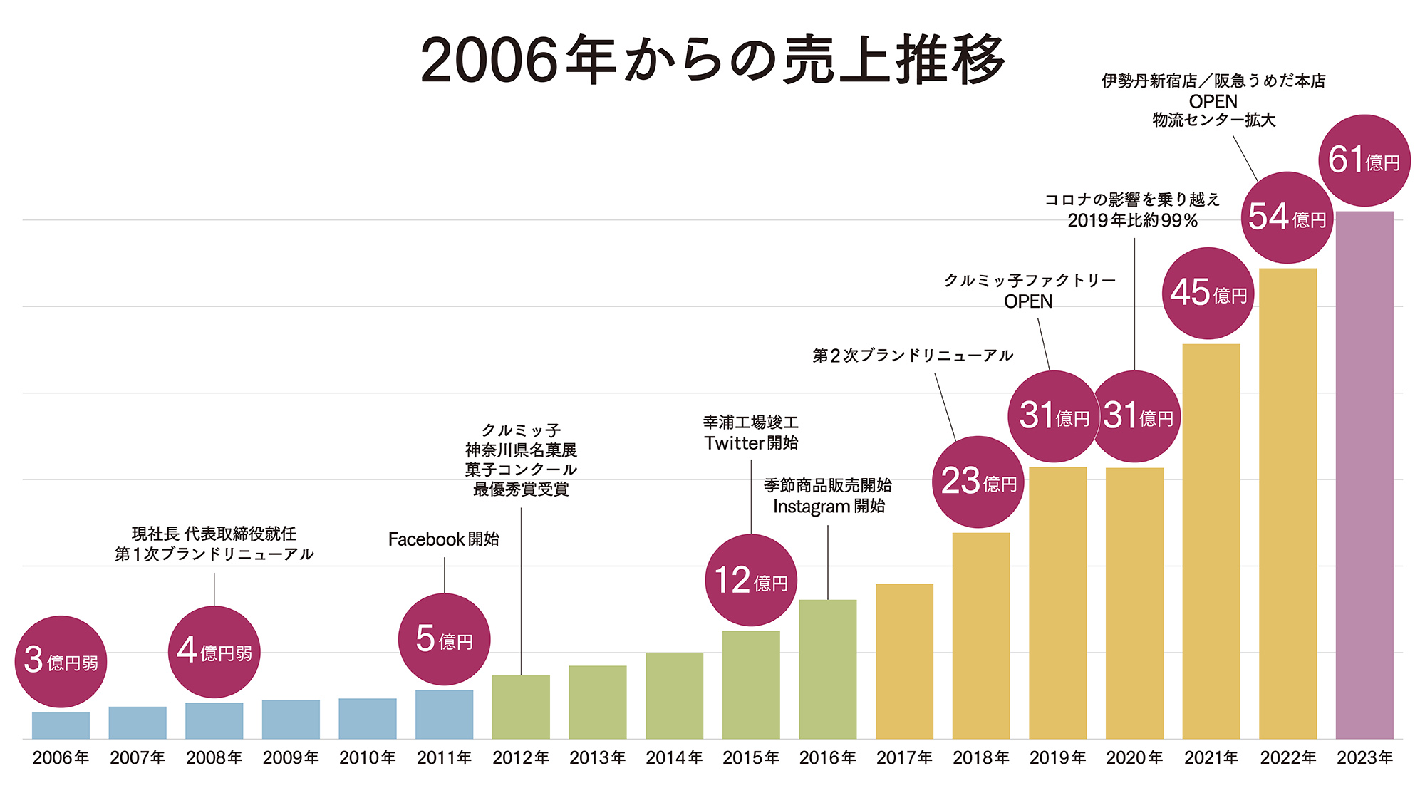 ここで、普段は社内でしかお見せすることのない2006年からの売上推移グラフを公開します。